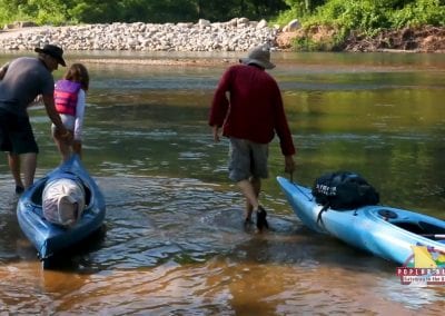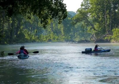 The Eleven Point National Scenic River was established in 1968 as a 44 mile scenic river, free of impoundments with a largely undeveloped shoreline and watershed. This portion of the river between Thomasville, Missouri and the Highway 142 bridge is near Gatewood, Missouri. It became one of the 8 initial units of the National Wild and Scenic River system in 1968. The Eleven Point River meanders through the picturesque Ozark hills of southern Missouri. Its course is cut in the shadows of steep bluffs, through sloping forested valleys, and low lying riparian ecosystems. Barely more than a small stream at its upper reaches near Thomasville, it gains considerable width and depth as its proceeds south-eastward. Springs pouring from dolomite bluffs or rushing up from a vast network of underground flow systems provide a continuous source of water and beauty. Alternating stretches of rapids and deep clear pools wind around moss covered boulders and shading bottomland hardwood trees.